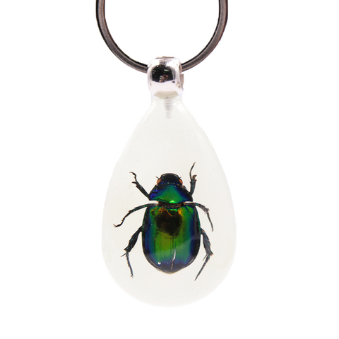 حشرة حقيقية مضيئة ، متوهجة في الظلام شكل قطرة من الراتنج عينة سلسلة مجوهرات ساحرة
